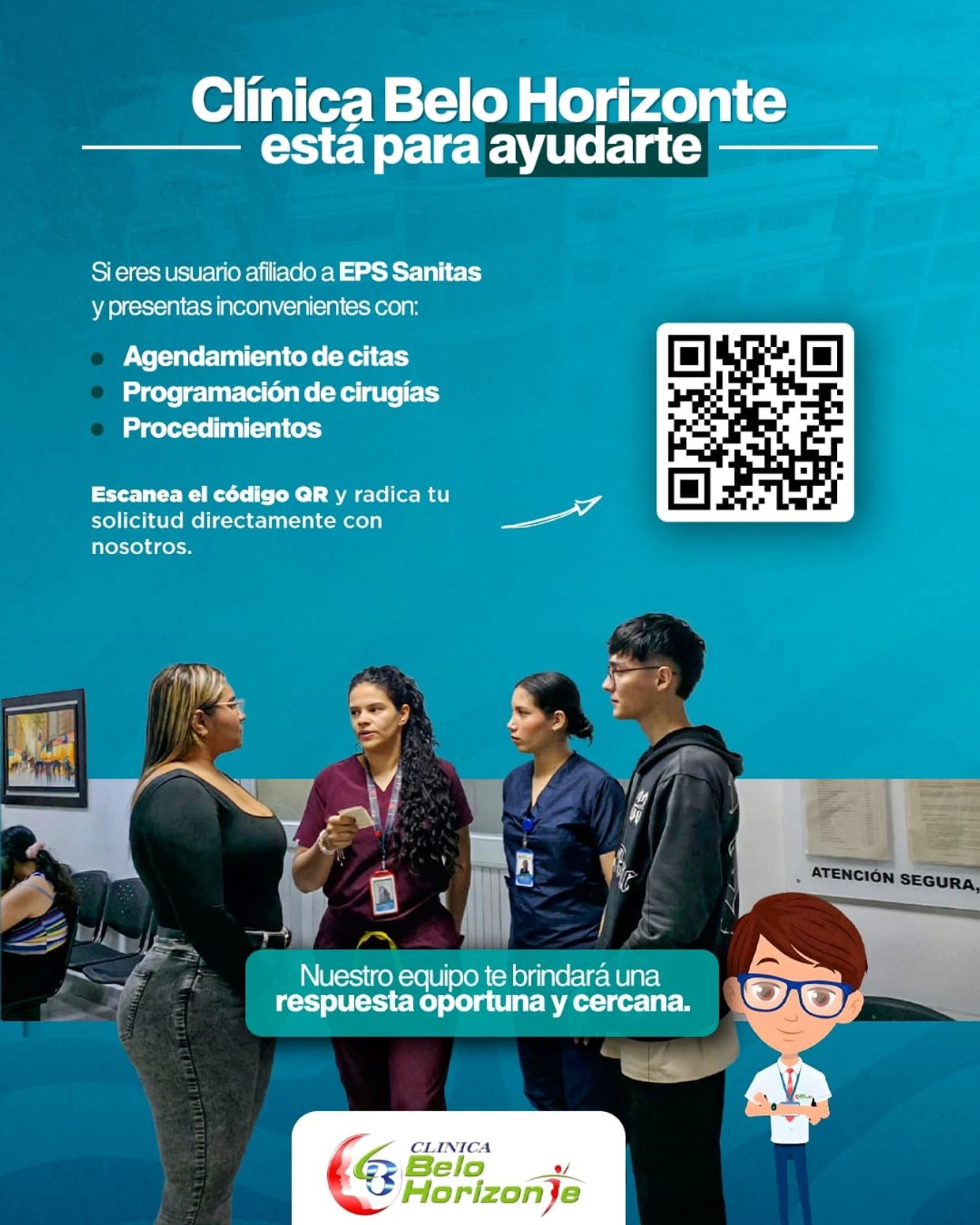 En Clínica Belo Horizonte S.A.S, nuestra misión es proporcionar atención médica de calidad a todos nuestros pacientes. Nos esforzamos por mejorar la salud y el bienestar de la comunidad mediante servicios de salud accesibles y efectivos.